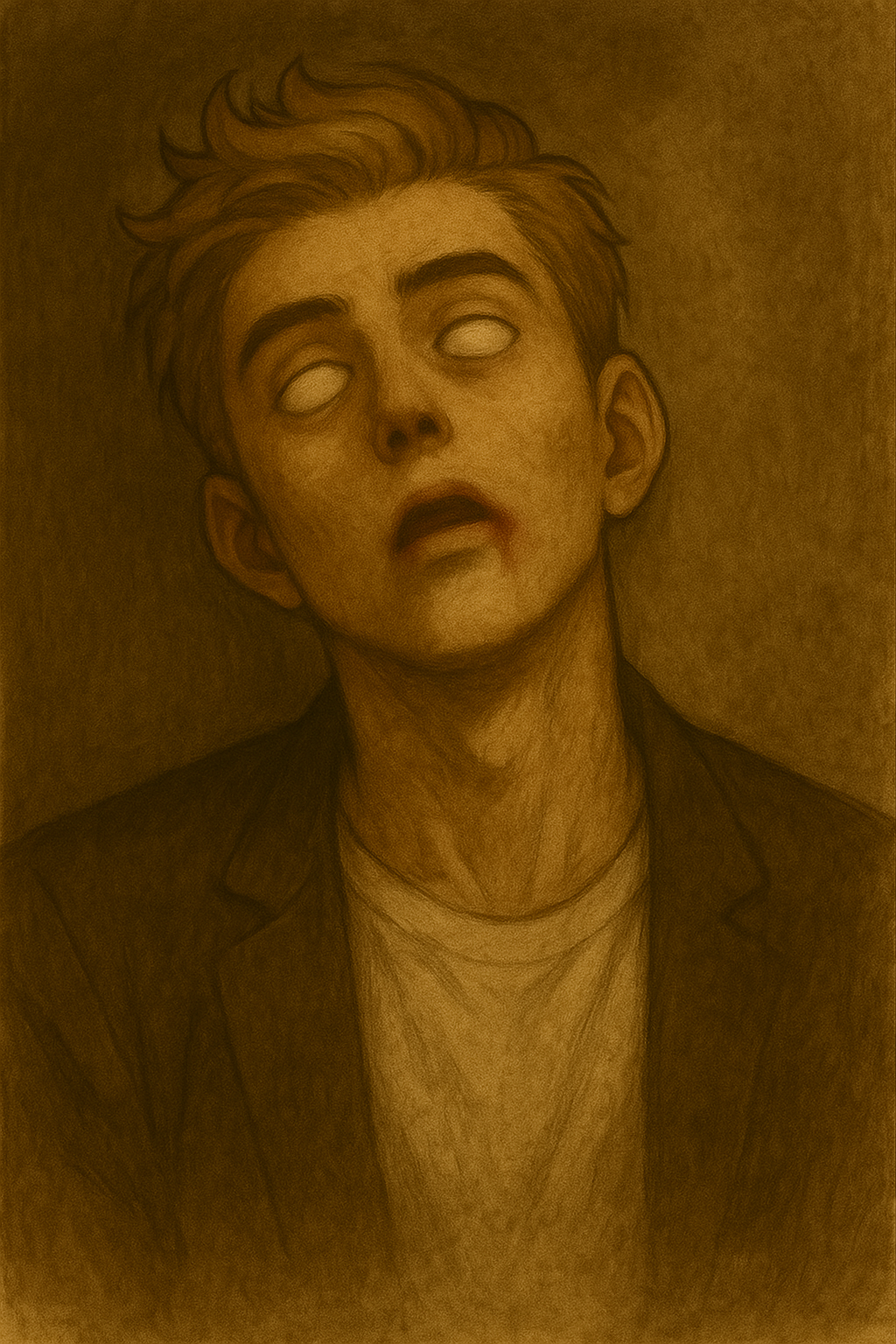흰자위로 뒤덮히고 눈동자는 뒤로 넘어간 이용필)