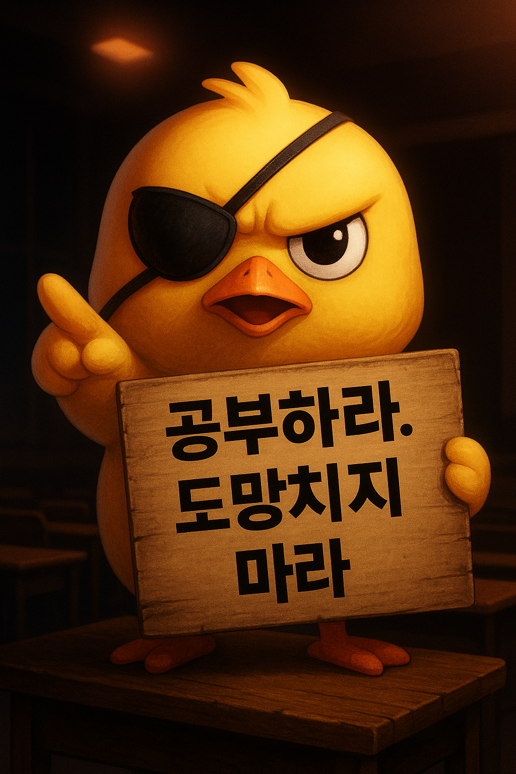 담당 멧돼지 (비웃으며):“한쪽 눈 없는 병아리, 넌 뭘 볼 수 있지?